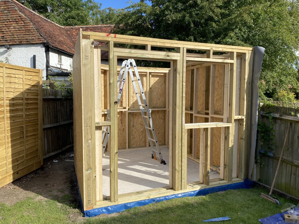 As soon as you start to fix the OSB, the entire strength and rigidity of the building takes hold and you’ll find there is no longer any flex or wiggle in the timbers.